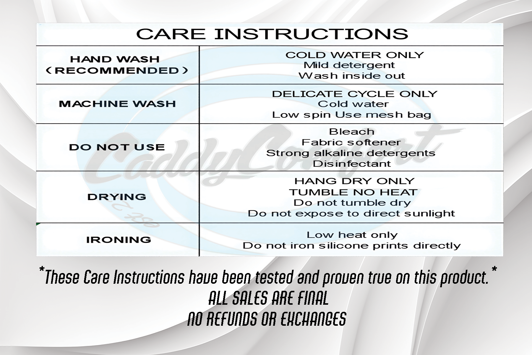 CARE INSTRUCTIONS: